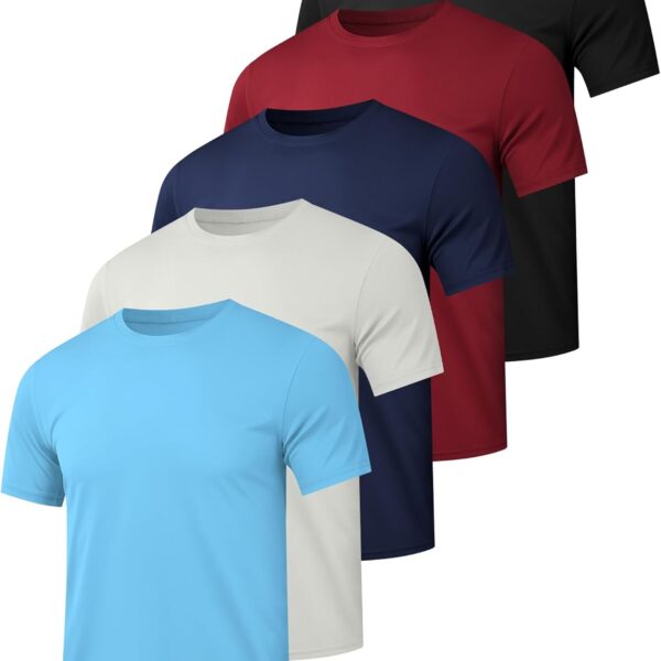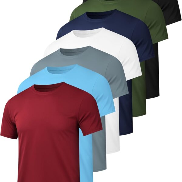 5/7 Pack Men's Dry Fit Workout Gym T Shirts, Short Sleeve Active Running Athletic Tee Tops