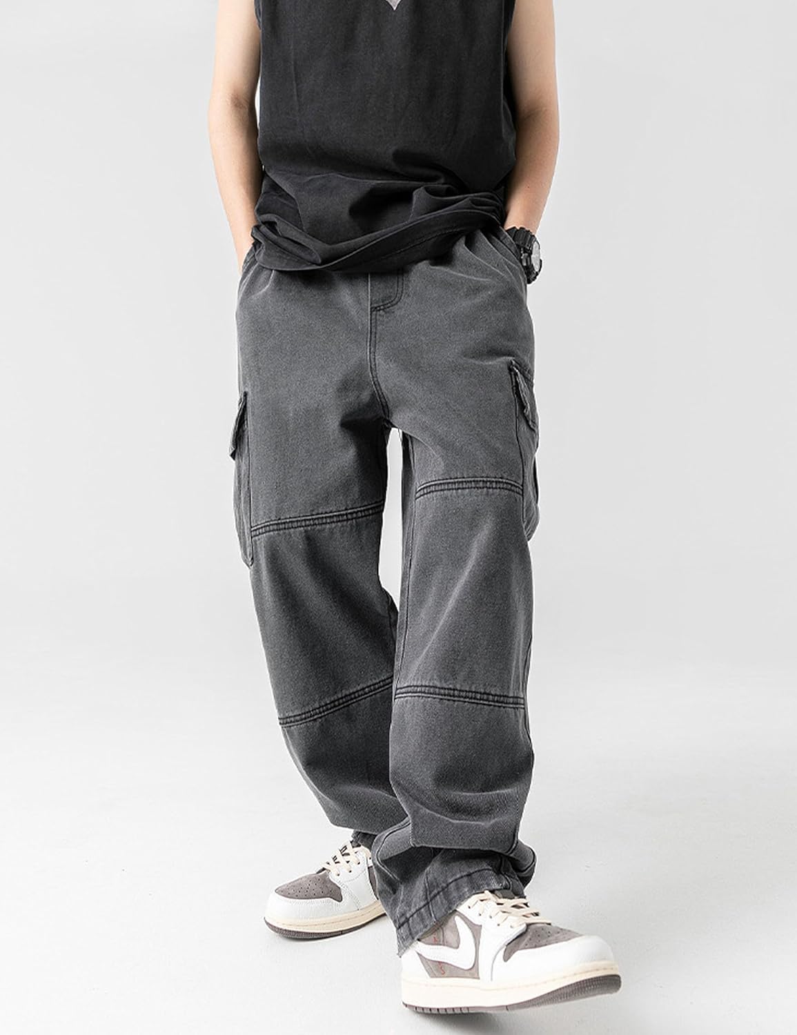 • Design: Solid color,wide leg,pockets,skateboard pants,denim cargo pants,hip hop jeans,punk jeans,