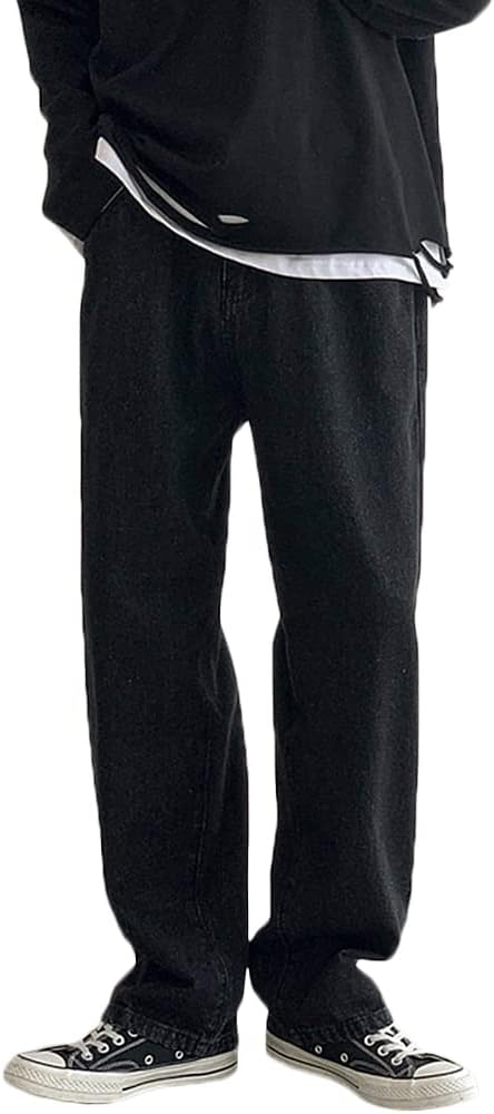 Men’s Loose Fit Straight Leg Denim Jeans Baggy Wide Leg Plain Pants Trousers