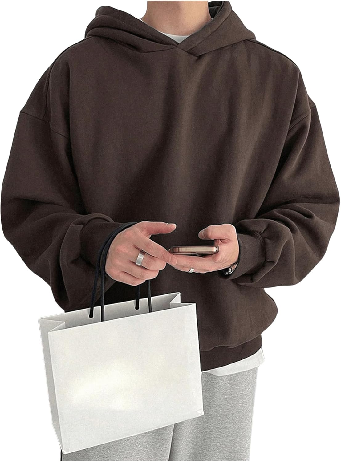 - Men’s oversized sweatshirts, long sleeve, drop shoulder, hooded, solid color, making you look casual and stylish