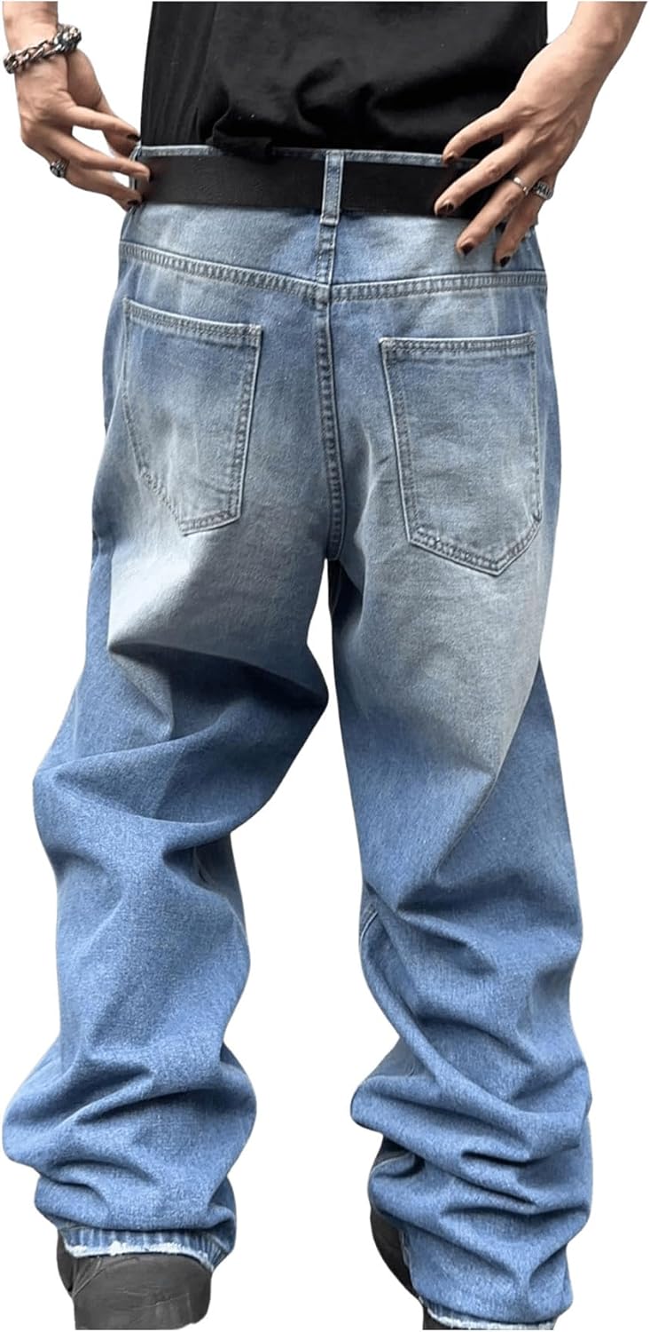 • Features: wide leg jeans for men, men’s baggy jeans, loose fit, denim jeans with pockets, plain pants